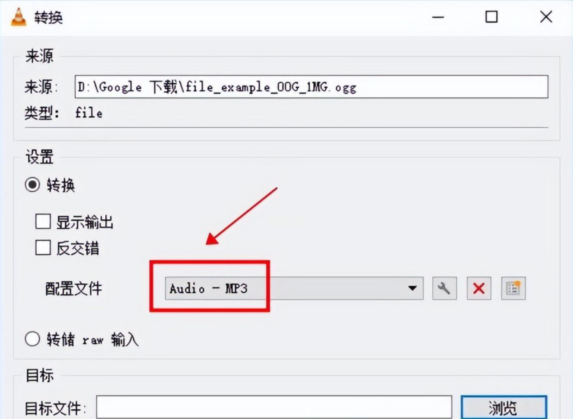3. 设置输出参数:点击"转换/保存"后,在"目标文件"栏选择MP4格式,点击"浏览"设置保存路径。点击"开始"后,VLC会自动启动转换。
