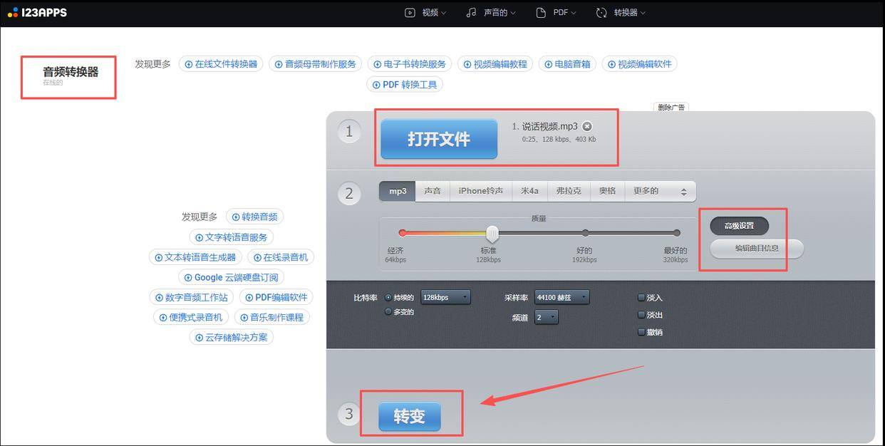 - 比特率建议选择128kbps以上(数值越高音质越好)