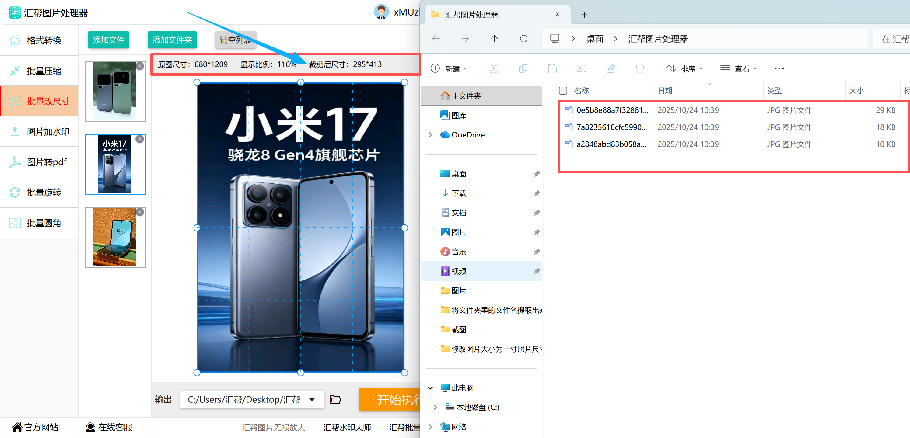 步骤五:软件自动完成裁剪、压缩与背景统一,处理完成后自动弹出结果文件夹。