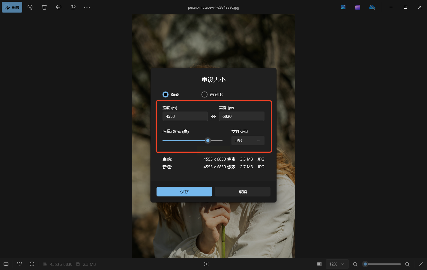 步骤四:确认修改后体积(建议控制在200KB以内),点击「保存」即可。