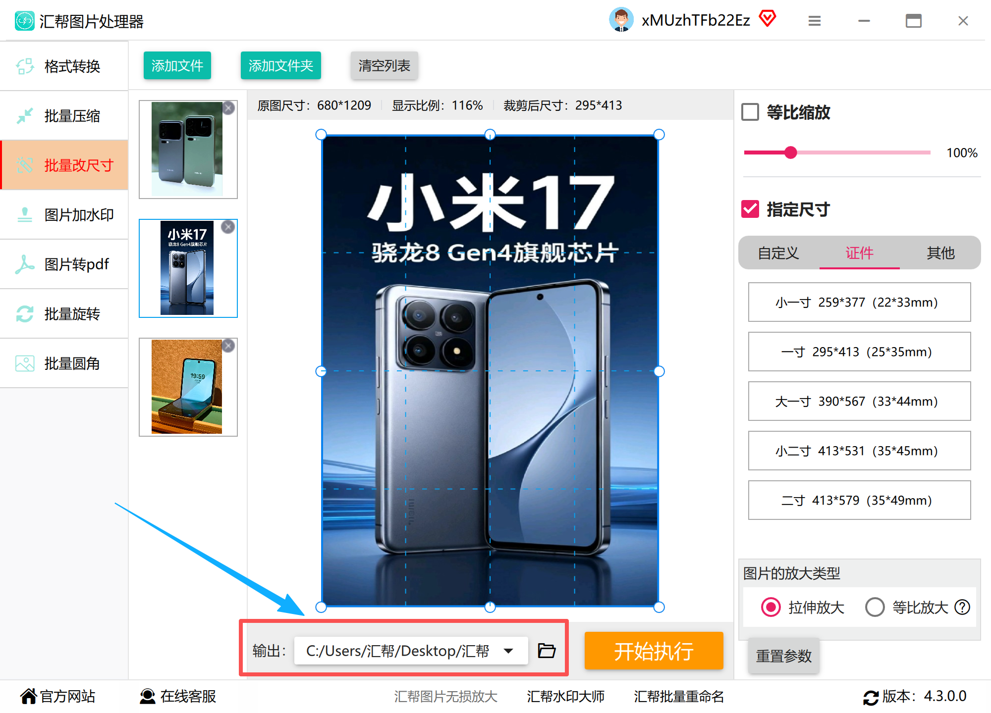 步骤四:设置输出路径(建议新建「证件照」文件夹分类存储),点击「开始执行」。