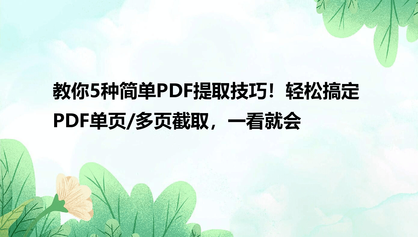 还在为PDF文件里的重要页面找不到而烦恼吗?无论是工作汇报里的关键数据页,还是论文里的核心章节,每次都要翻找整个文档太浪费时间!本文手把手教你用5款工具,从单个文件里精准提取指定页面,甚至批量处理多个文件。不管你是电脑小白还是追求高效的办公达人,这些简单又实用的方法都能帮你节省80%的时间,让文件管理变得超轻松!