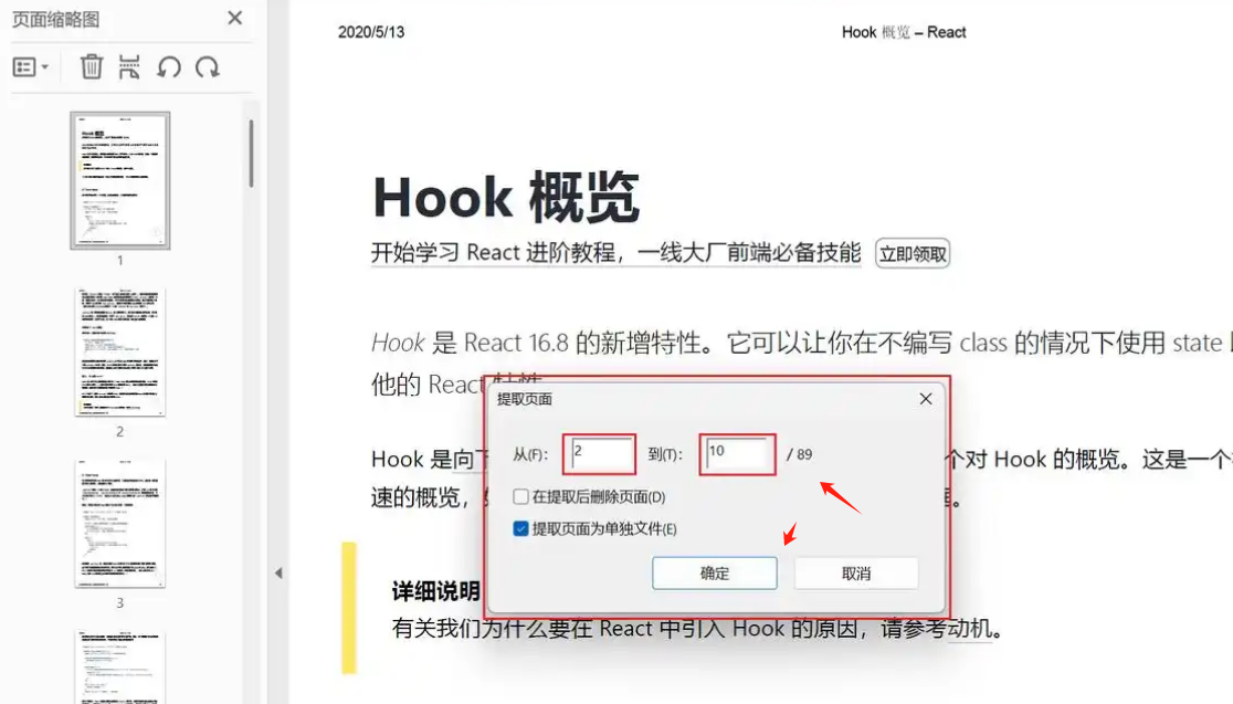 4. 设置提取范围:这里可以手动输入页码,比如“1-5,7,9-12”,也能直接拖动缩略图来选择。