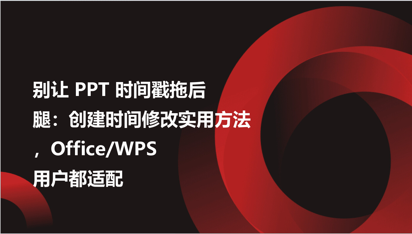 在职场中,PPT的创建时间看似不起眼,却可能在不经意间影响你的专业形象。想象一下,当你向领导展示一份精心准备的方案,文件属性却显示它创建于一年前;或者投标时,PPT的时间戳与项目周期明显不符,这些细节都可能引发不必要的质疑。其实,修改PPT的创建时间并不复杂,掌握正确的方法,几分钟就能搞定。今天,我们就从不同场景出发,为你梳理几种可靠的操作思路,无论你常用Office还是WPS,都能找到适合自己的解决方案。