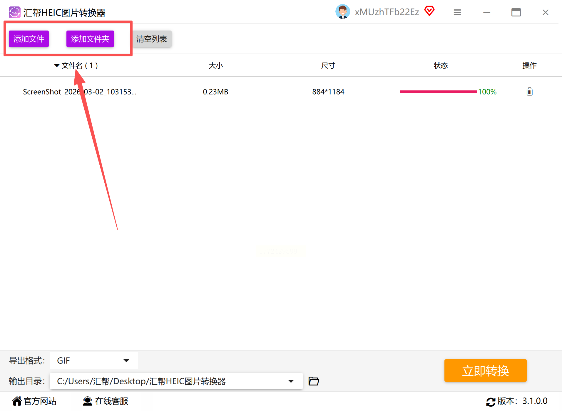 Step1:打开软件后,直接点击“添加文件”按钮,支持一键批量导入HEIC图片(最多同时添加几十张)
