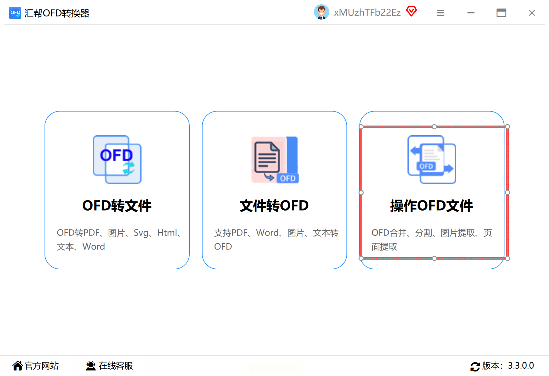 步骤一:启动程序后在主界面选择“OFD文件操作”模块,进入多功能集成操作面板。