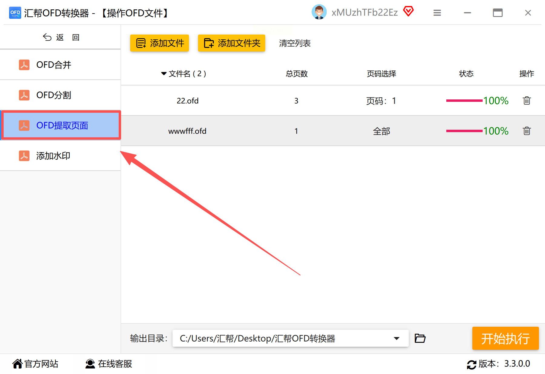 步骤二:从左侧功能导航栏点击“OFD提取页面”选项,此时界面将切换至专用提取视图。