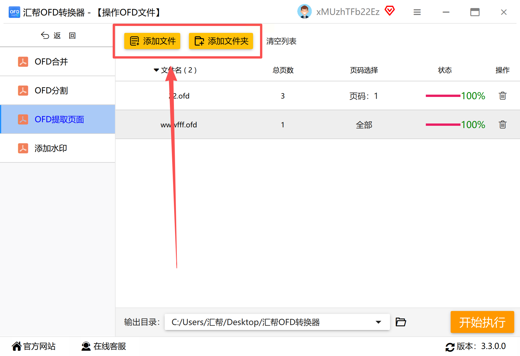 步骤三:通过“添加文件”按钮导入目标文档,或直接将OFD文件拖拽至上传区域,支持批量文件队列处理。