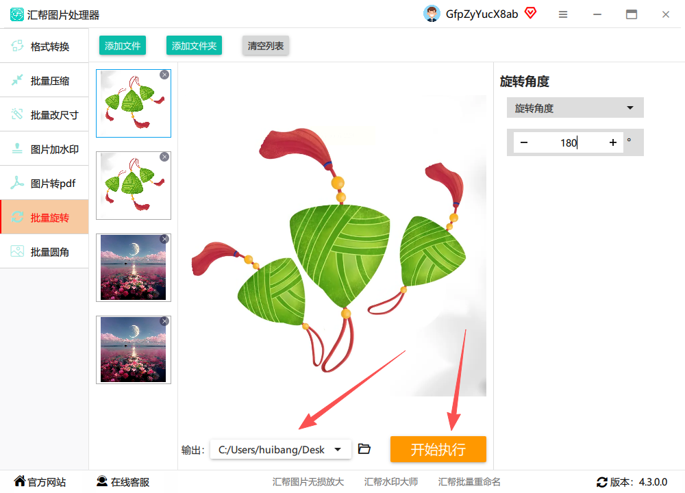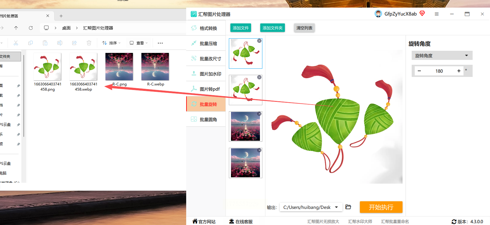 工具特点:开源免费,功能全面,除旋转外还能压缩、格式转换,适合办公场景(如处理PDF转图片、图片批量重命名),批量处理照片旋转180度不报错。