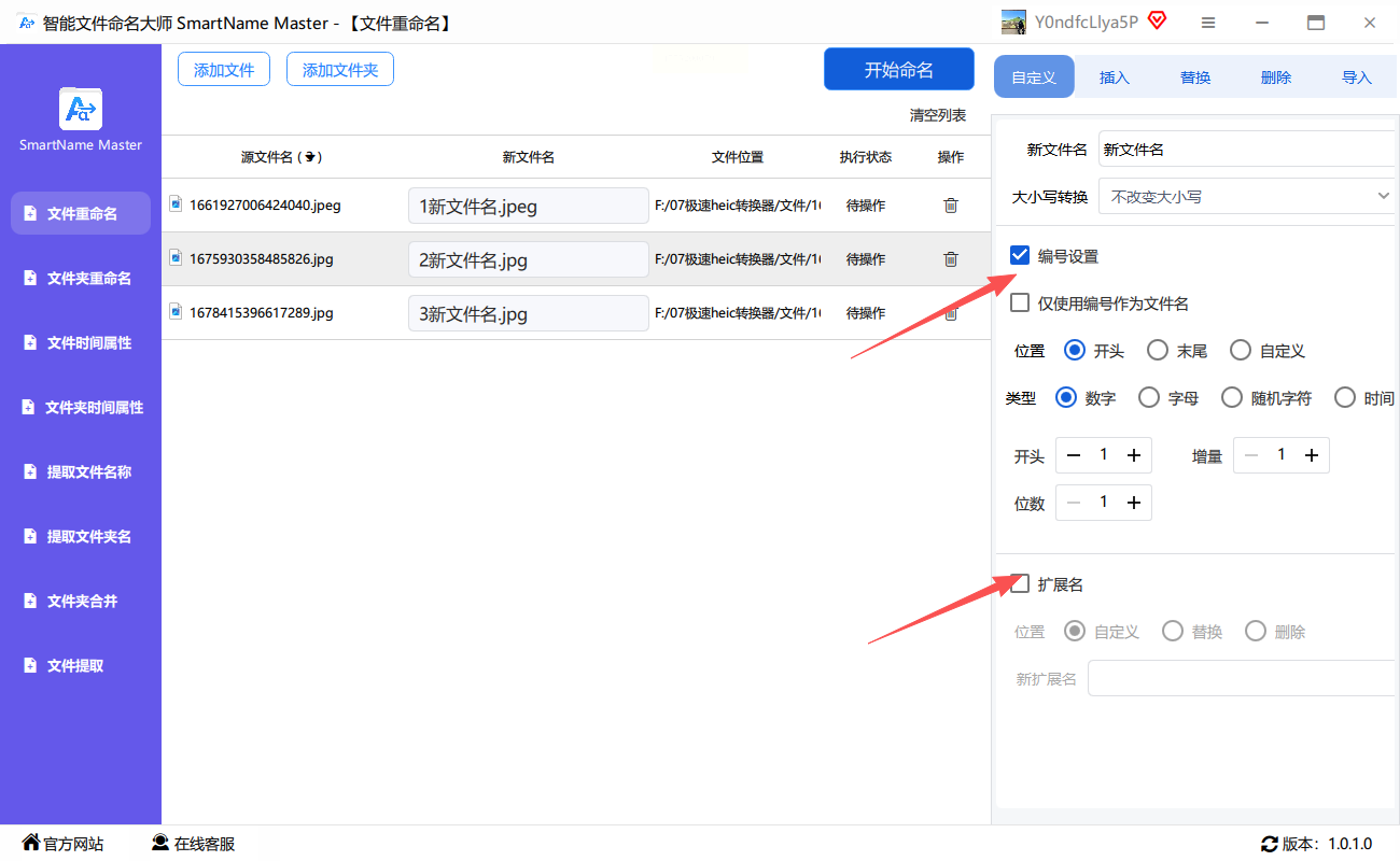 - 扩展名处理:勾选“保留原扩展名”,确保图片格式不被改变