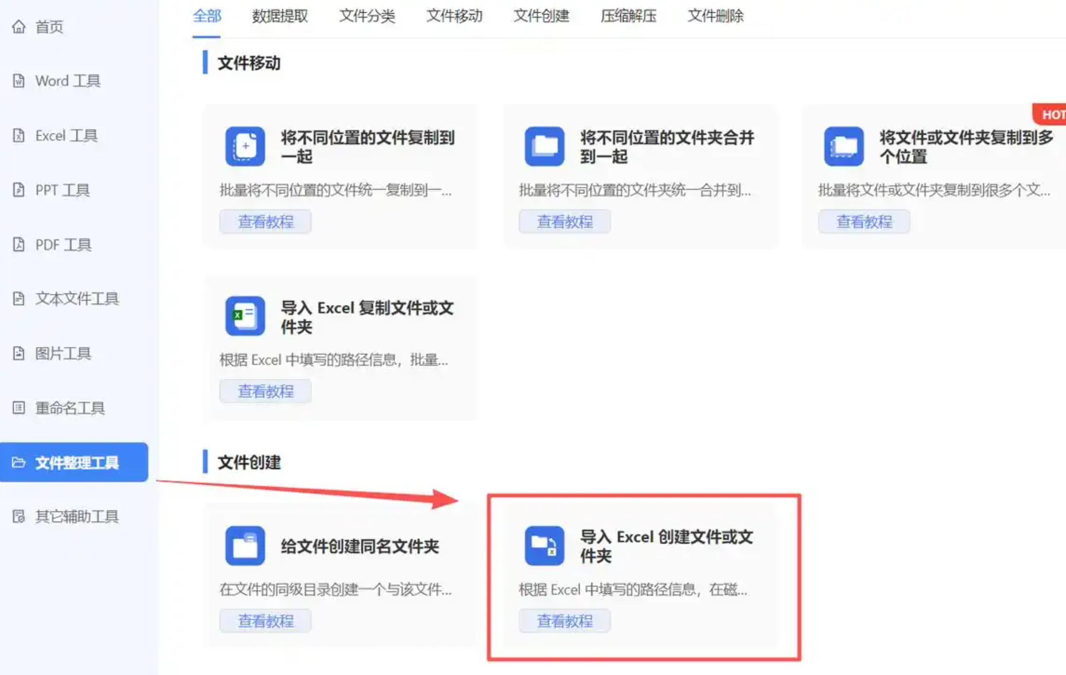 步骤一:访问相关在线处理平台,在其工具列表中找到文件创建或文件整理类功能,例如“导入Excel创建文件”。