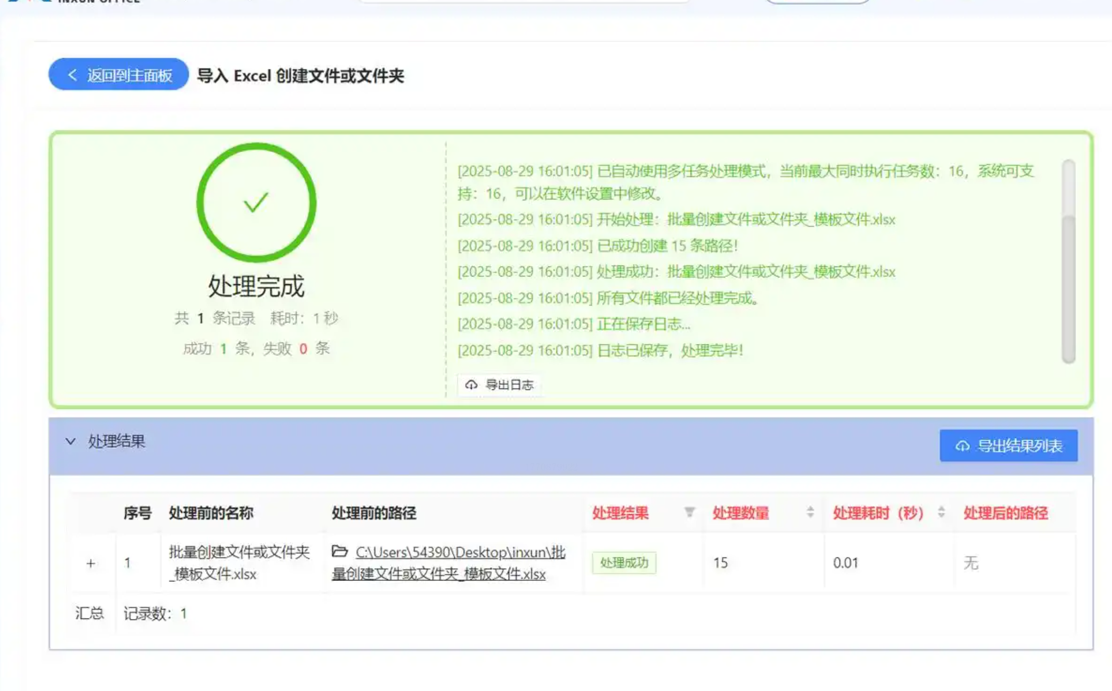 步骤五:完成上述所有设置后,点击“立即执行”或“开始生成”按钮。软件会快速处理任务,并提示创建成功。