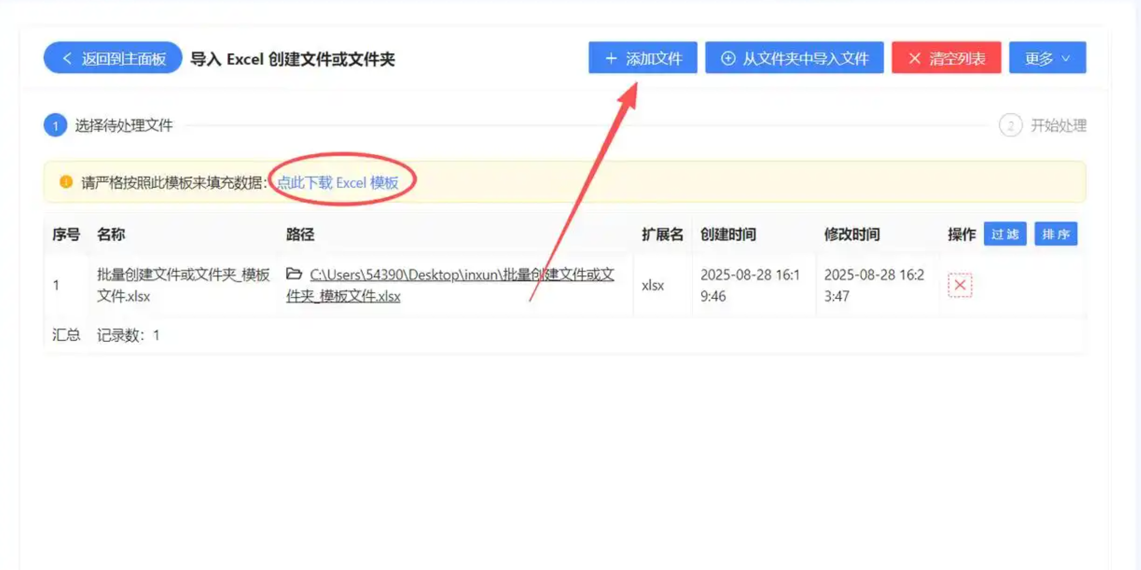 步骤三:将填写好的Excel模板文件上传至平台。按照提示设置输出选项,并启动处理任务。