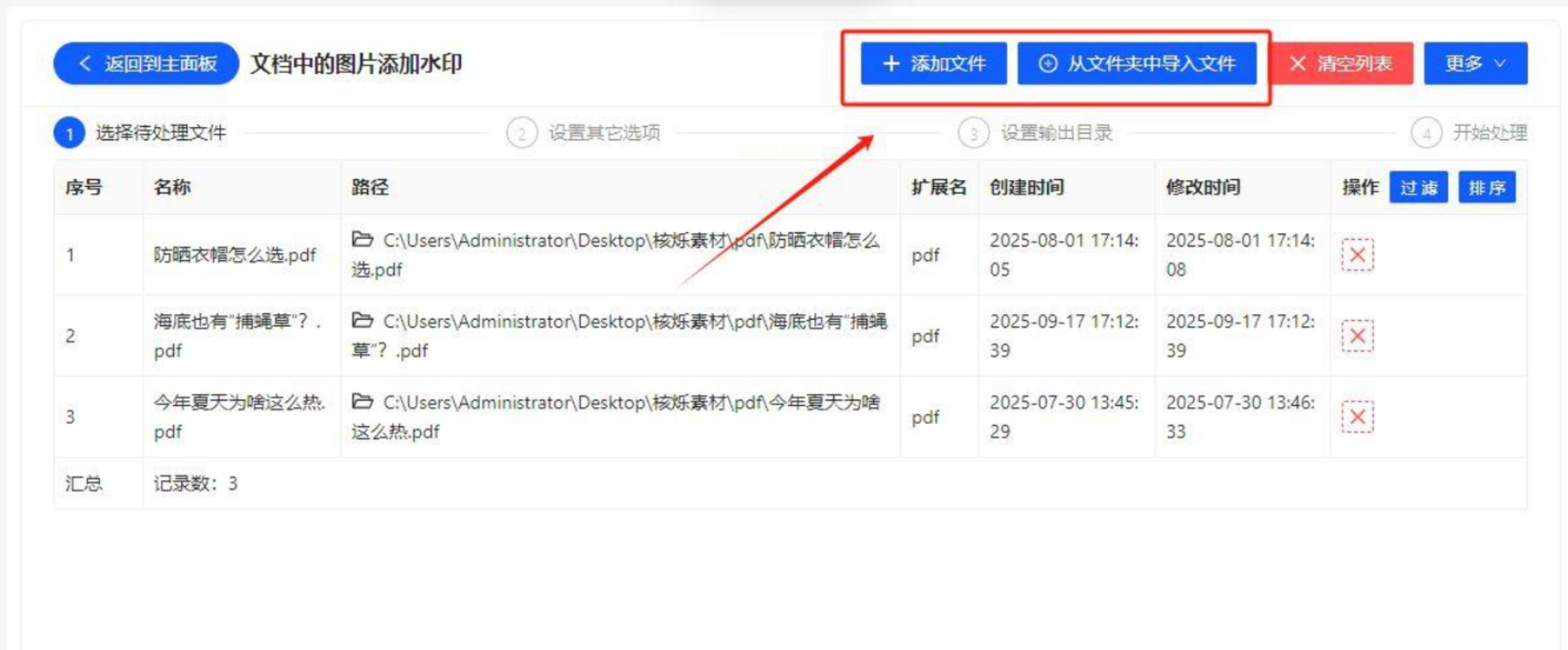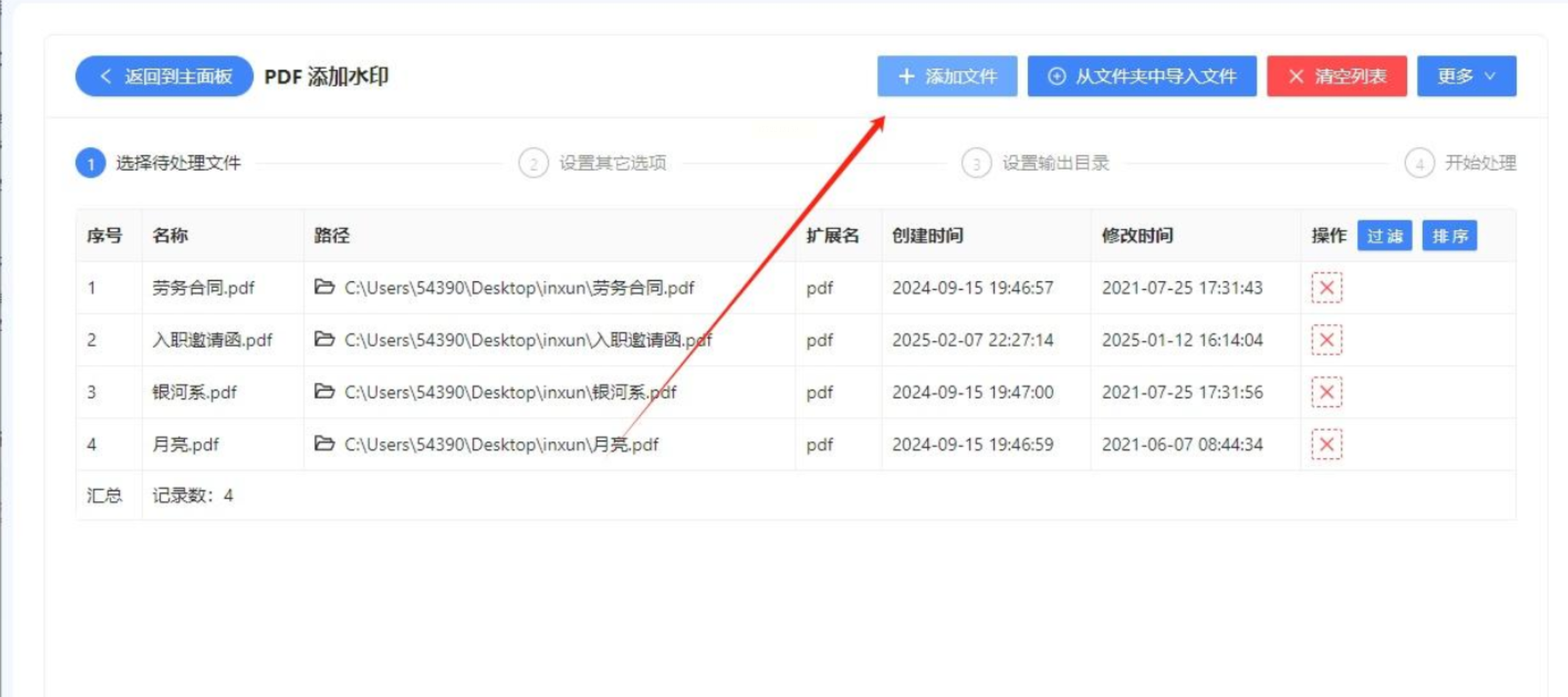 - 点击“添加文件”,找到你要处理的PDF文件,选1个或多个都可以(批量处理超方便)。