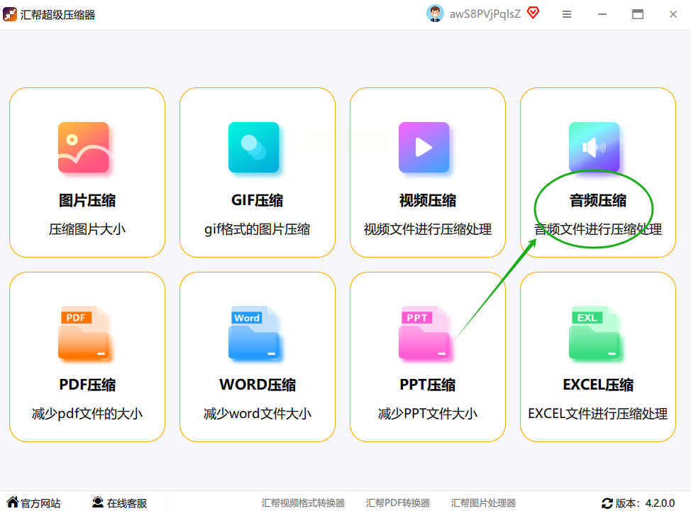 你把软件安装好以后,双击打开。主界面通常很清爽,功能图标排得明明白白。你啥也不用管,直接找“音频压缩”或者类似的字眼,大概率就在最显眼的位置。点它,就进到压缩的主战场了。