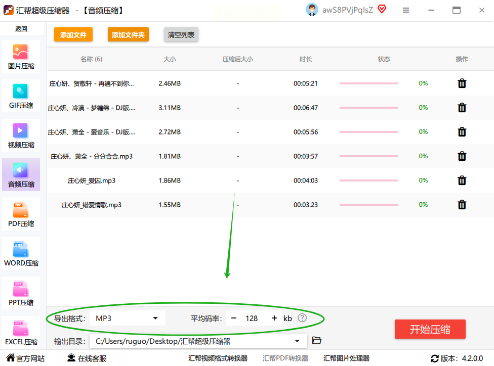 - 保存位置:千万记得改一下输出目录!别用默认的,不然压缩完你可能找半天。最好自己新建一个文件夹,比如叫“已压缩音频”,然后指定到这里。这样所有处理好的文件都规规矩矩在一起,方便管理。