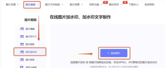 1. 点击“添加图片水印”,上传准备好的水印图片(建议PNG格式,避免背景干扰);
