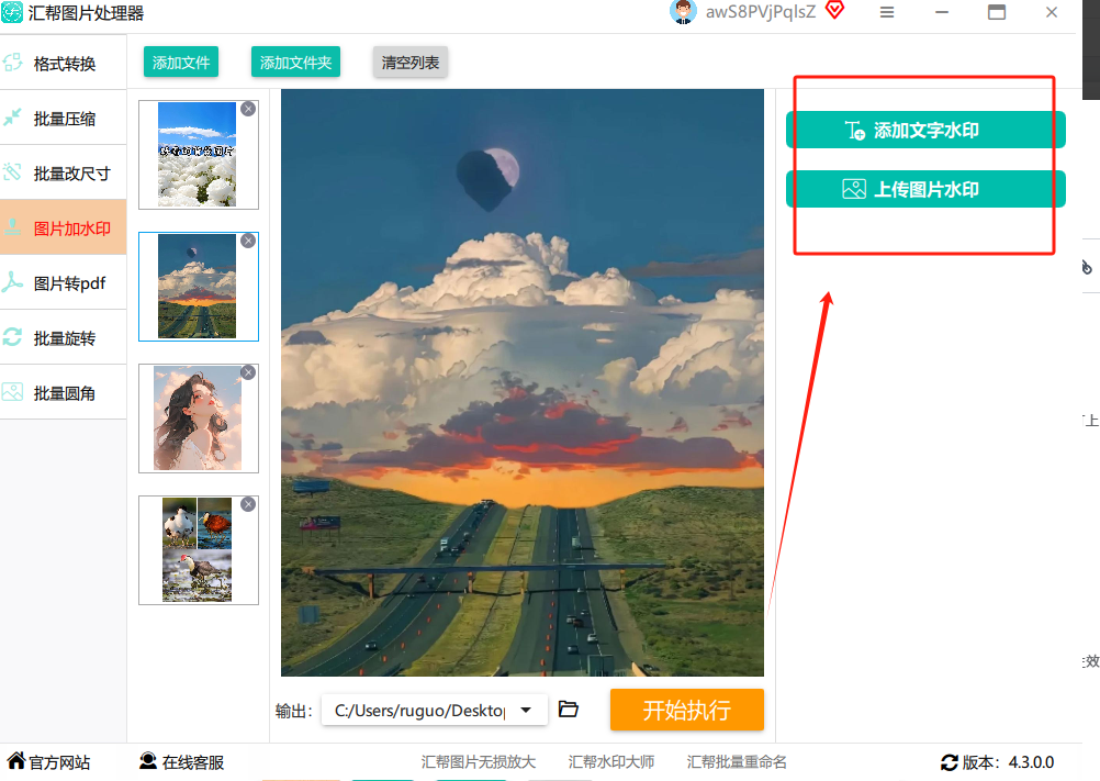 批量加水印的方法一:电脑端专业工具——汇帮图片处理器(适合有一定软件操作需求)