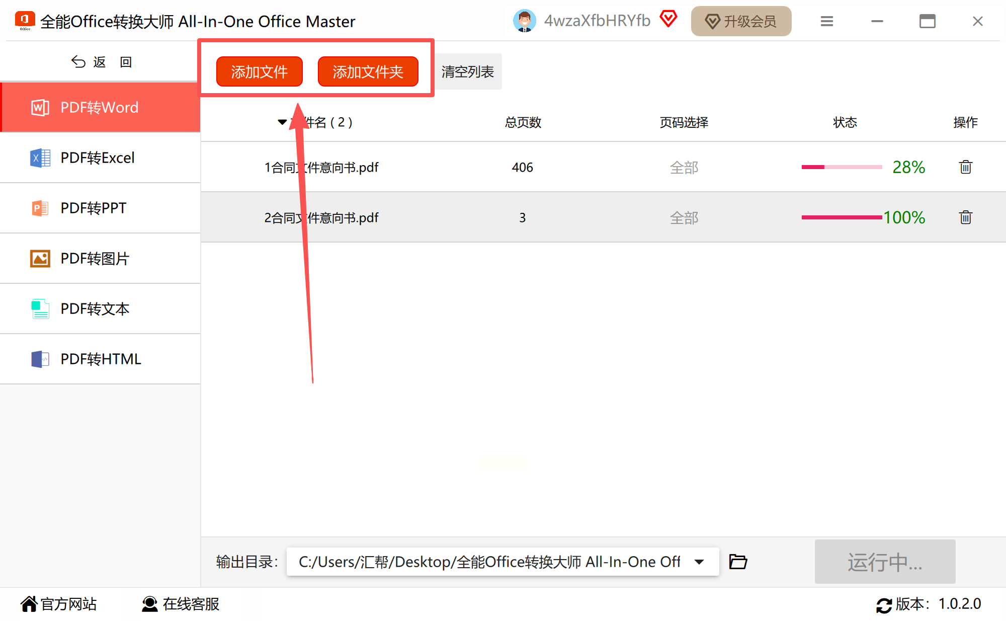 步骤二:通过“添加文件”或“添加文件夹”导入PDF,也支持直接拖拽上传。