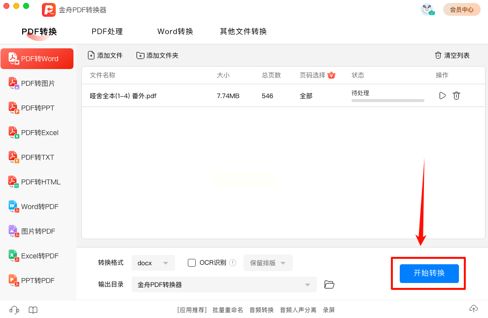 金舟PDF转换器界面简洁,专注于核心转换功能,适合需要快速完成转换且不常处理复杂版面的用户。