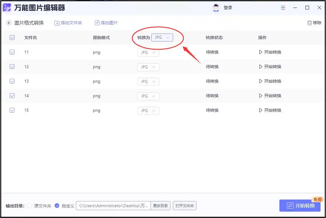 步骤四:接着,点一下“输出目录”,选一个你电脑上方便找到的文件夹,用来存放转换后的图片。