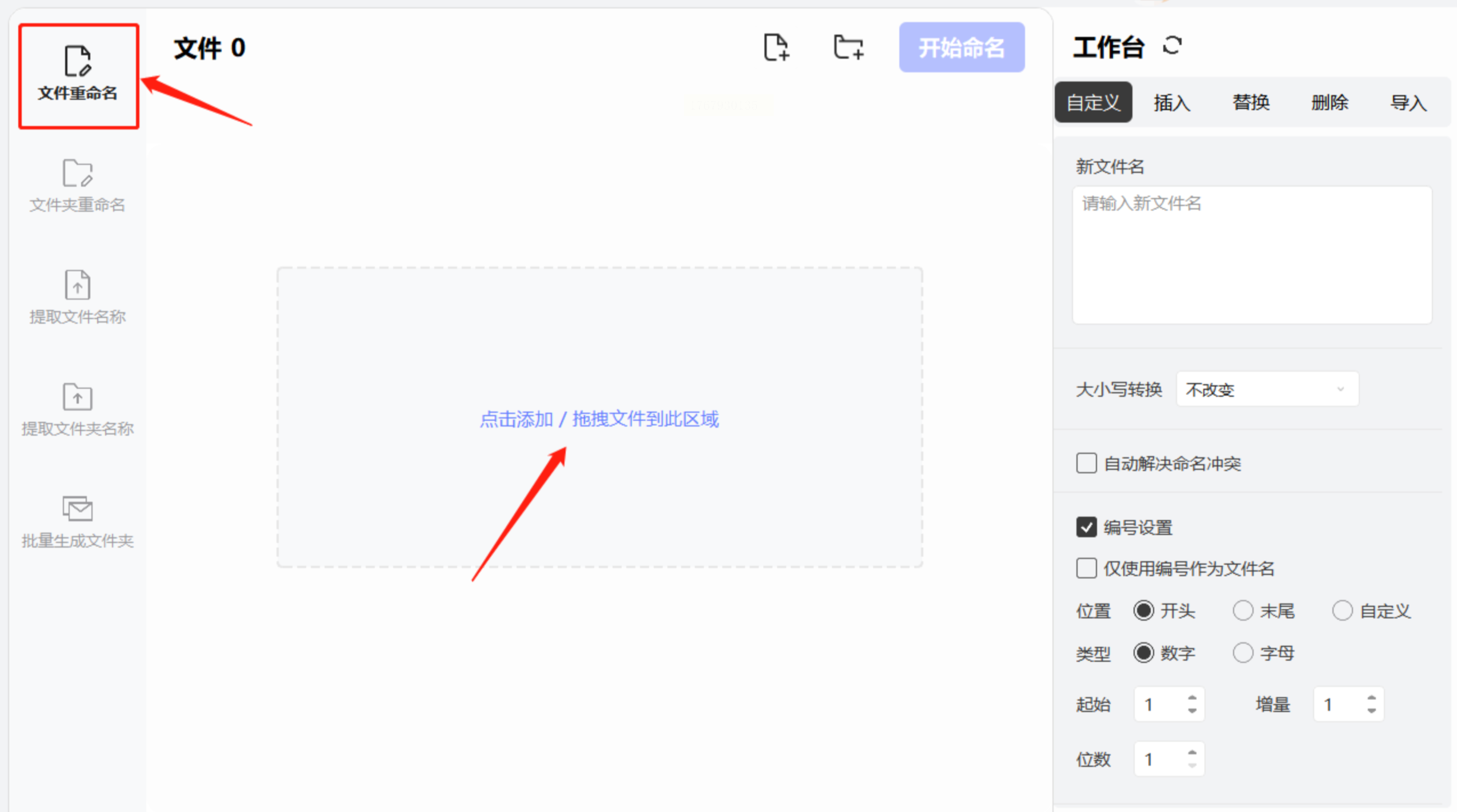 1. 添加文件与选择模式:打开小舟软件后,选择"文件重命名"模块,通过拖放功能将目标PPT文件批量导入。支持同时导入多个文件夹中的文件。