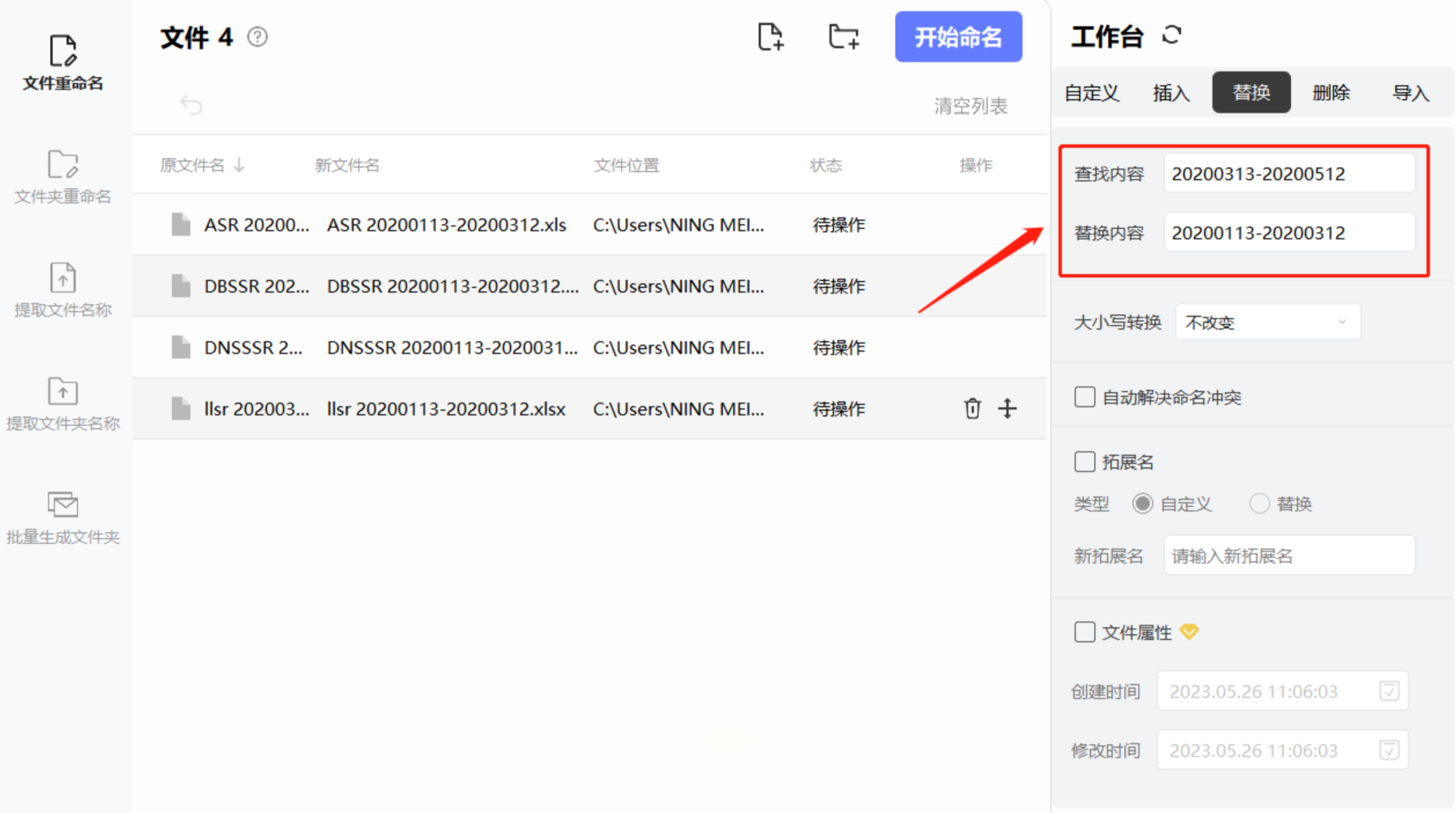 - 位置范围:设置替换范围(全部字符/仅文件名/仅扩展名)