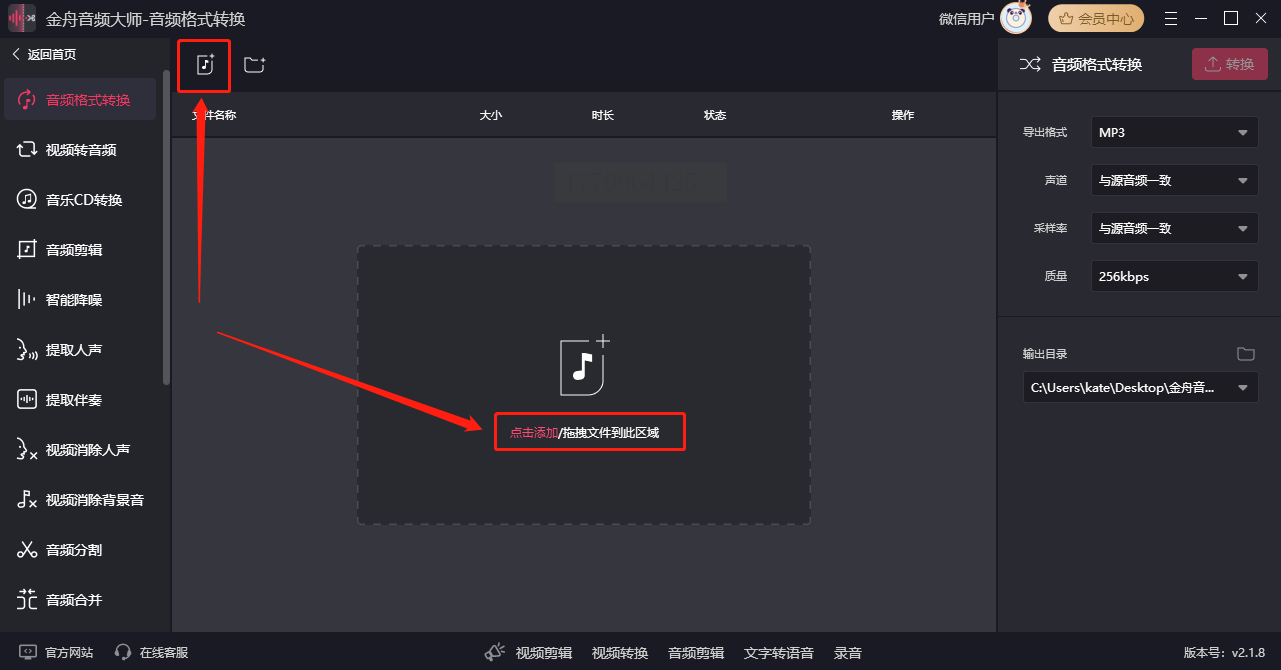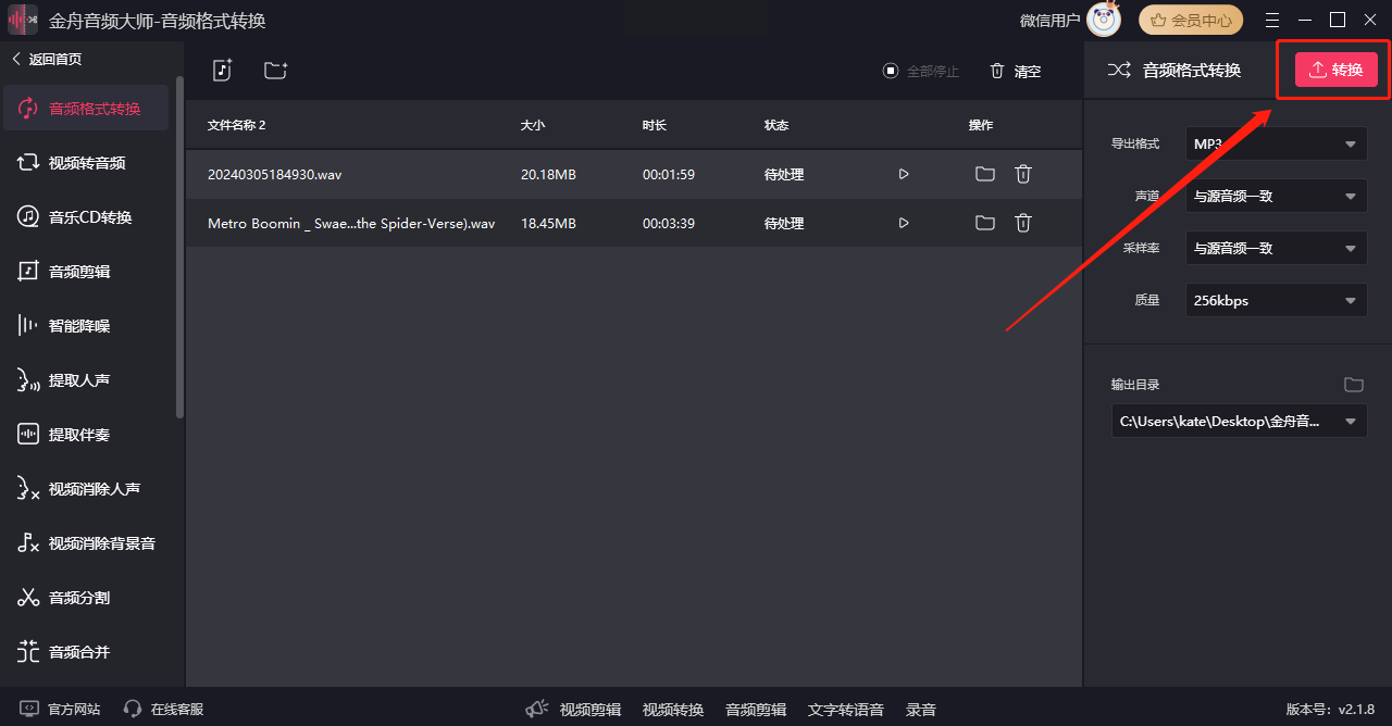 双击桌面快捷方式启动软件,点击界面中央的“上传”按钮,浏览电脑或外接设备(如U盘)中的文件夹,选中要转换的WAV文件。如果是批量导入,可按住Ctrl键多选文件,或直接拖拽多个文件到界面中。
