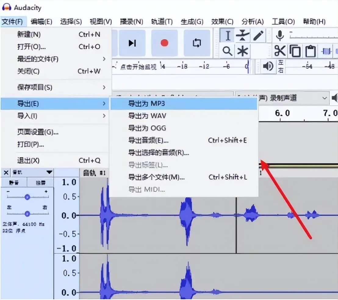 步骤2:导出为MP3格式