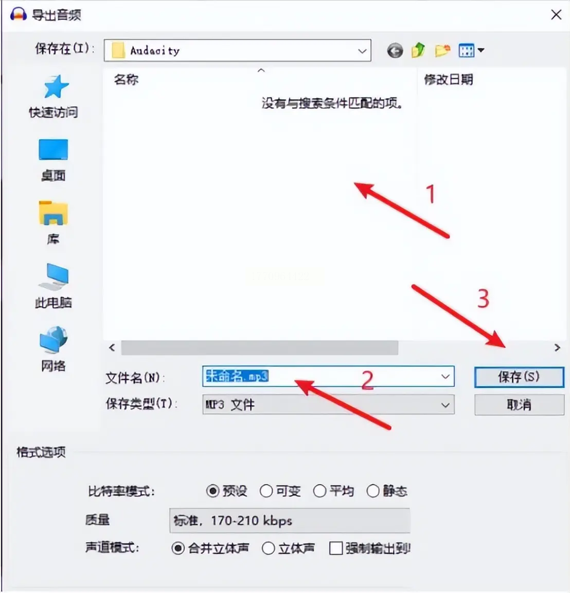 设置好后点击“保存”,软件会生成MP3文件并保存在指定位置。需要注意的是,首次使用时需安装LAME编码器(Audacity会自动提示),否则无法导出MP3。