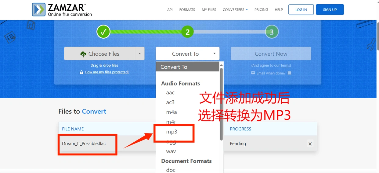 2. 添加文件:点击“Choose Files”选择需要转换的FLAC文件。