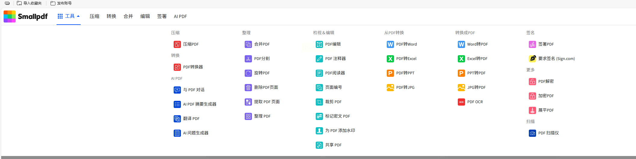步骤一:使用浏览器打开SmallPDF的官方网站。