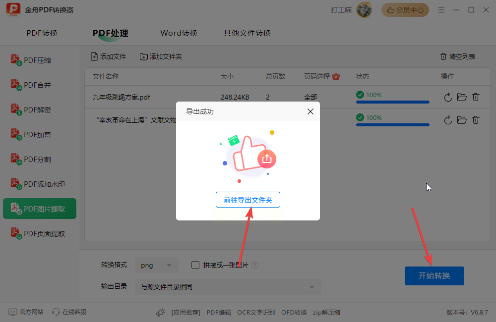 5. 查看结果:点“前往导出文件夹”,直接看到提取好的图片,按PDF文件名分类,一目了然。