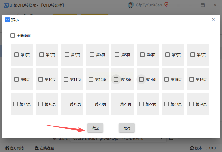 步骤四:页码选择方式很灵活。你可以用鼠标点击选中单个页码,也可以按住键盘按键配合鼠标进行多选,或者直接使用“全选”功能。选择完毕后,点击确认按钮。
