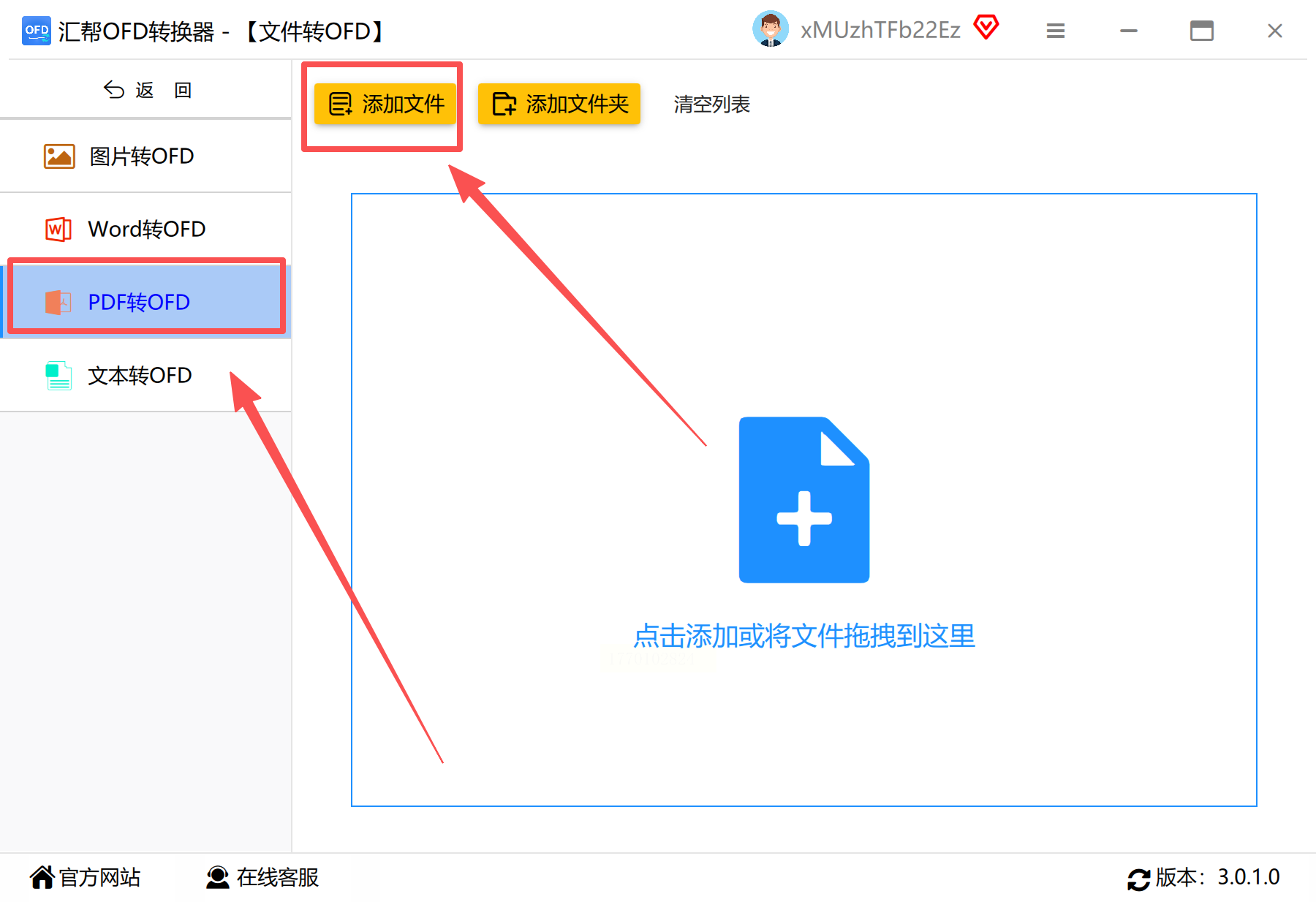 步骤三:上传文件(支持拖放操作),设置输出格式为OFD。