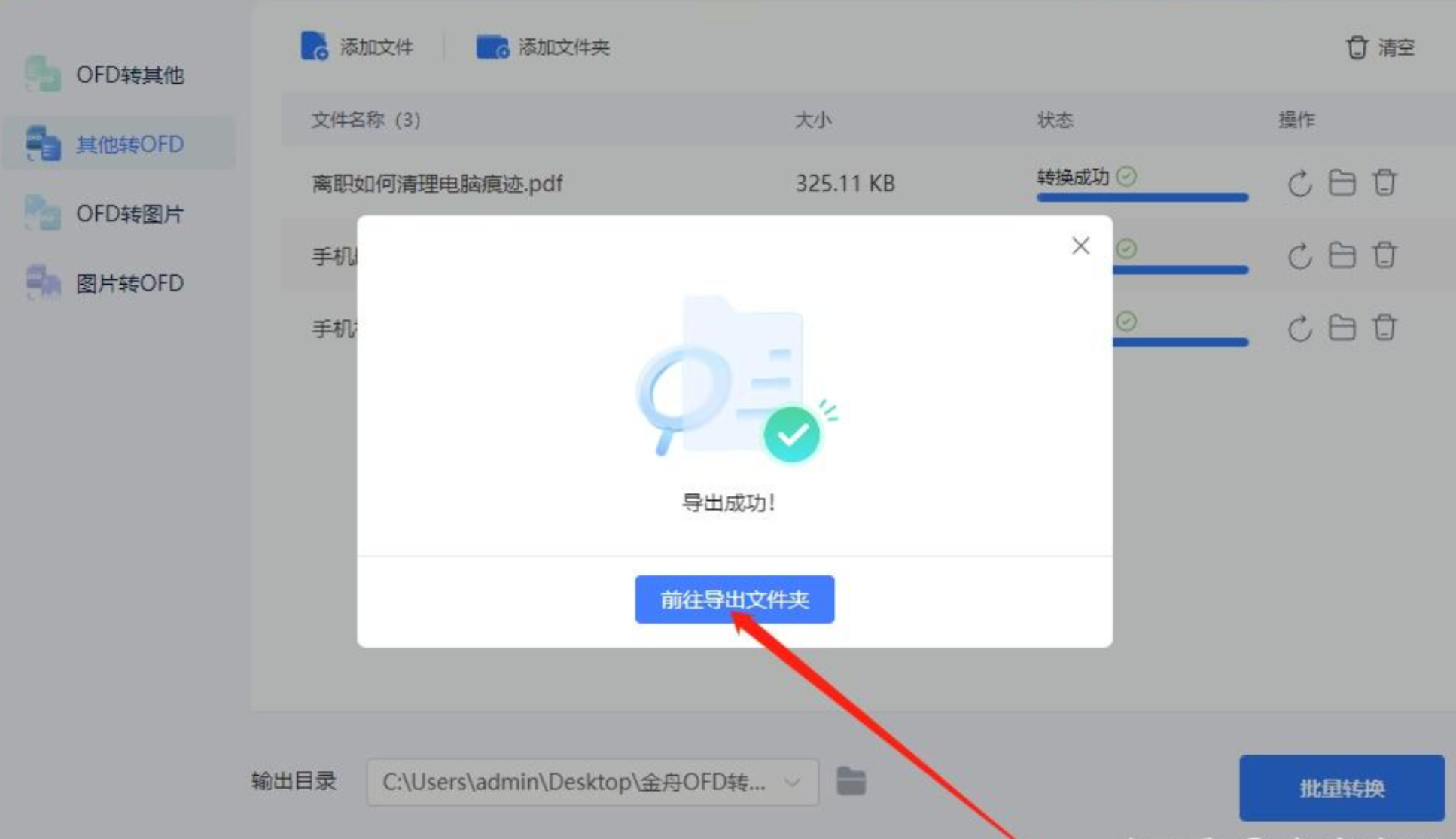 步骤四:在弹出的保存路径设置窗口,建议选择独立文件夹(如"D:\PDFtoOFD"),避免覆盖源文件。