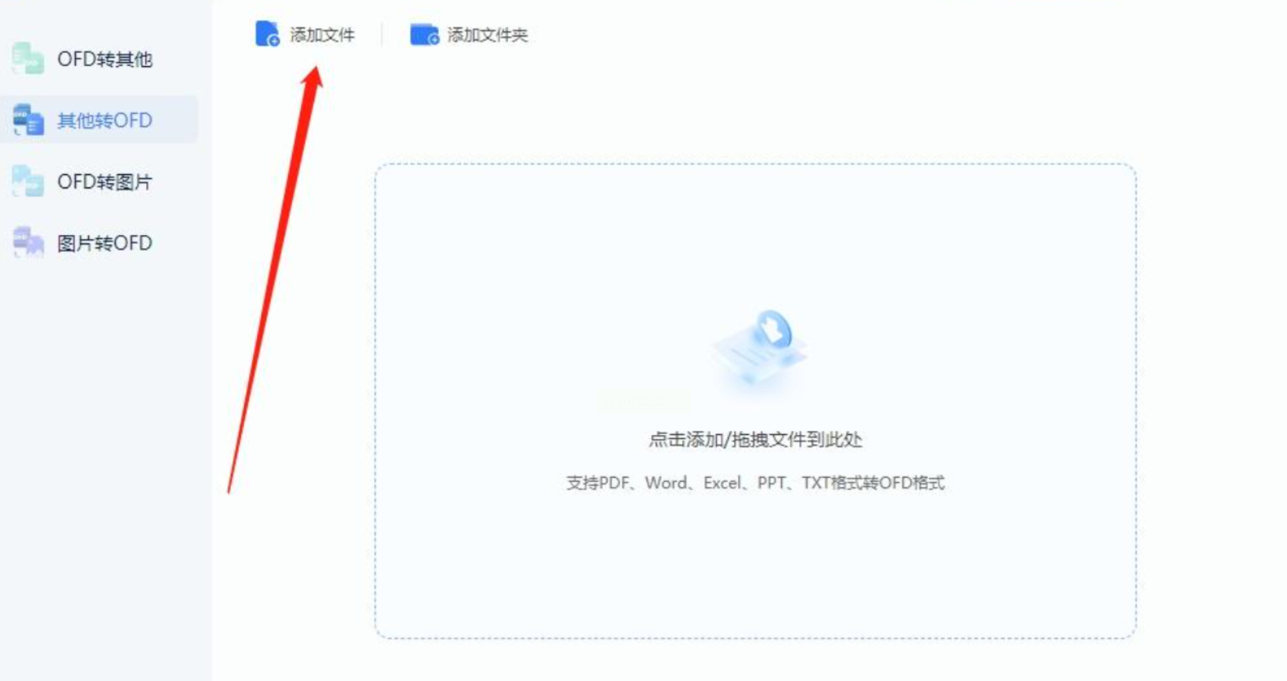 步骤一:打开软件后,在主界面左侧找到"文件转OFD"功能模块,这个模块专门针对PDF发票类文件的转换优化。