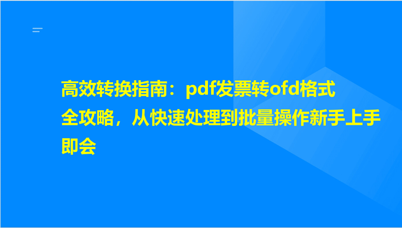 在电子发票日益普及的今天,PDF格式因其通用性成为许多人接收发票的首选。然而,随着我国电子文件标准体系的完善,OFD格式凭借其结构稳定、安全可控、长期可读等特性,逐渐在政务、金融及企业归档场景中成为规范要求。面对报销、审计或档案管理等实际需求,将手中的PDF发票转换为OFD格式,已成为不少财务人员与办公族需要掌握的技能。本文将从工具选择、操作细节及注意事项等多个角度,为你梳理出清晰、可靠的转换路径,帮助你高效完成格式转换,确保电子发票的合规性与可用性。