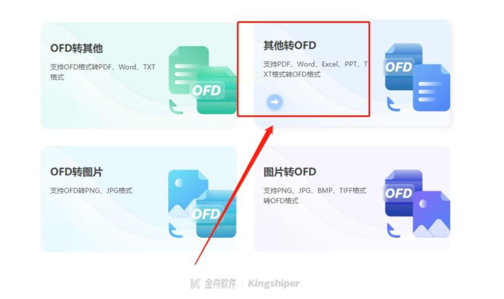- 步骤一:打开软件后,选择「PDF文件转换」功能组中的「其他格式转OFD」选项。