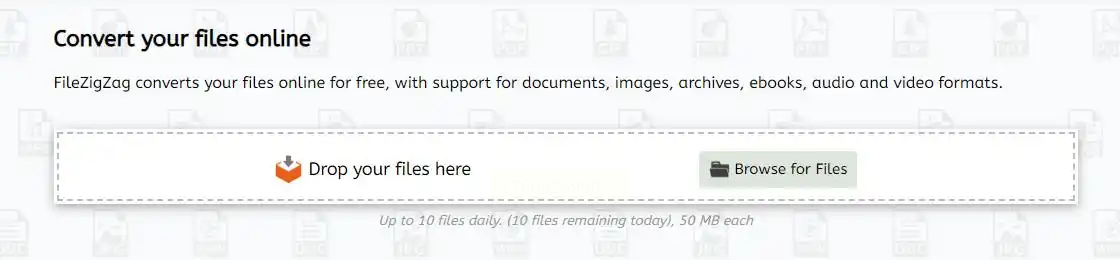 1. 使用浏览器打开FILEZIGZAG的官网,找到“Browse for Files”按钮,点击后在电脑中选择要转换的PDF文件。