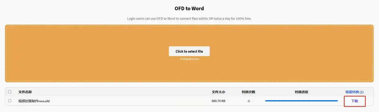 步骤二:确认文件后点击转换按钮,系统会在后台自动处理。