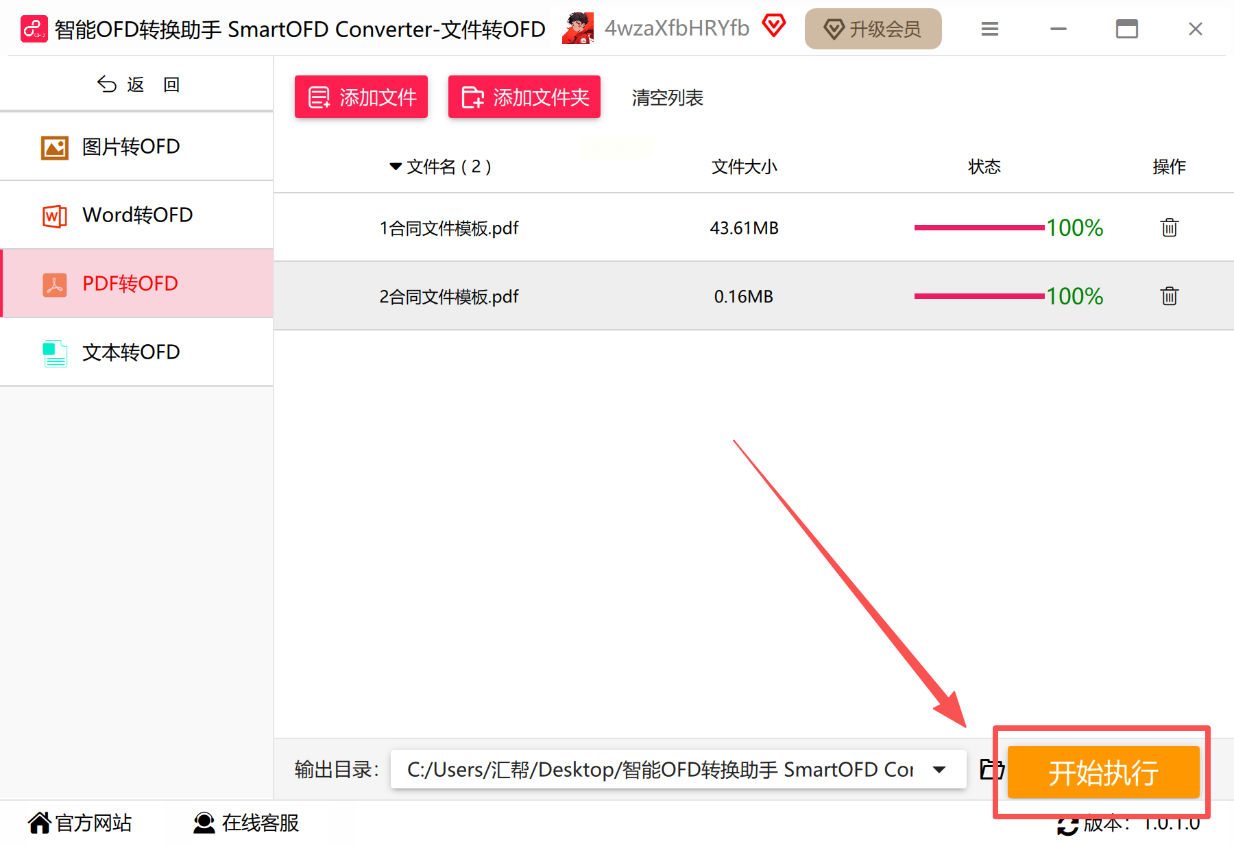 步骤四:确认设置无误后,点击“开始执行”按钮,稍等片刻即可完成转换。