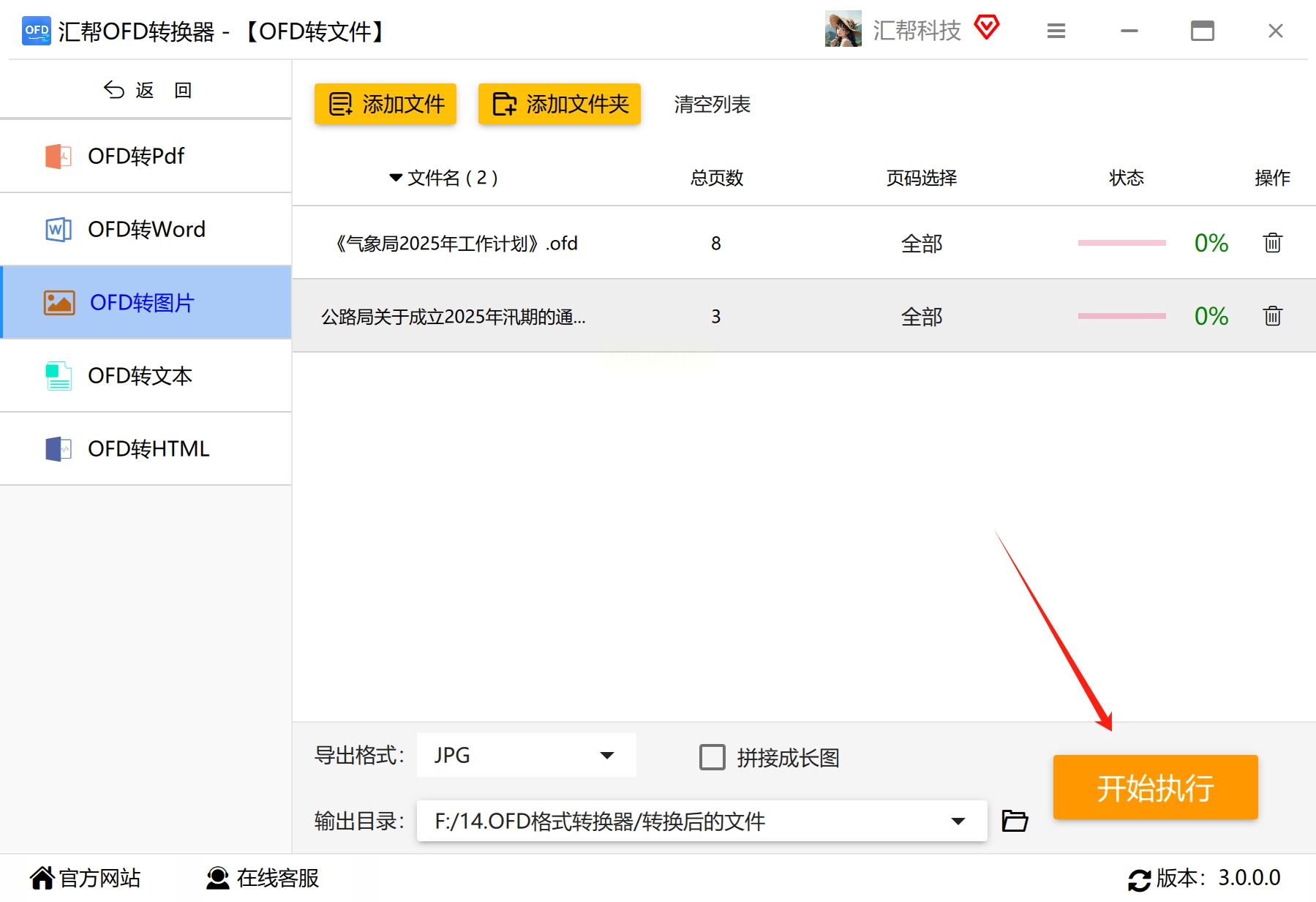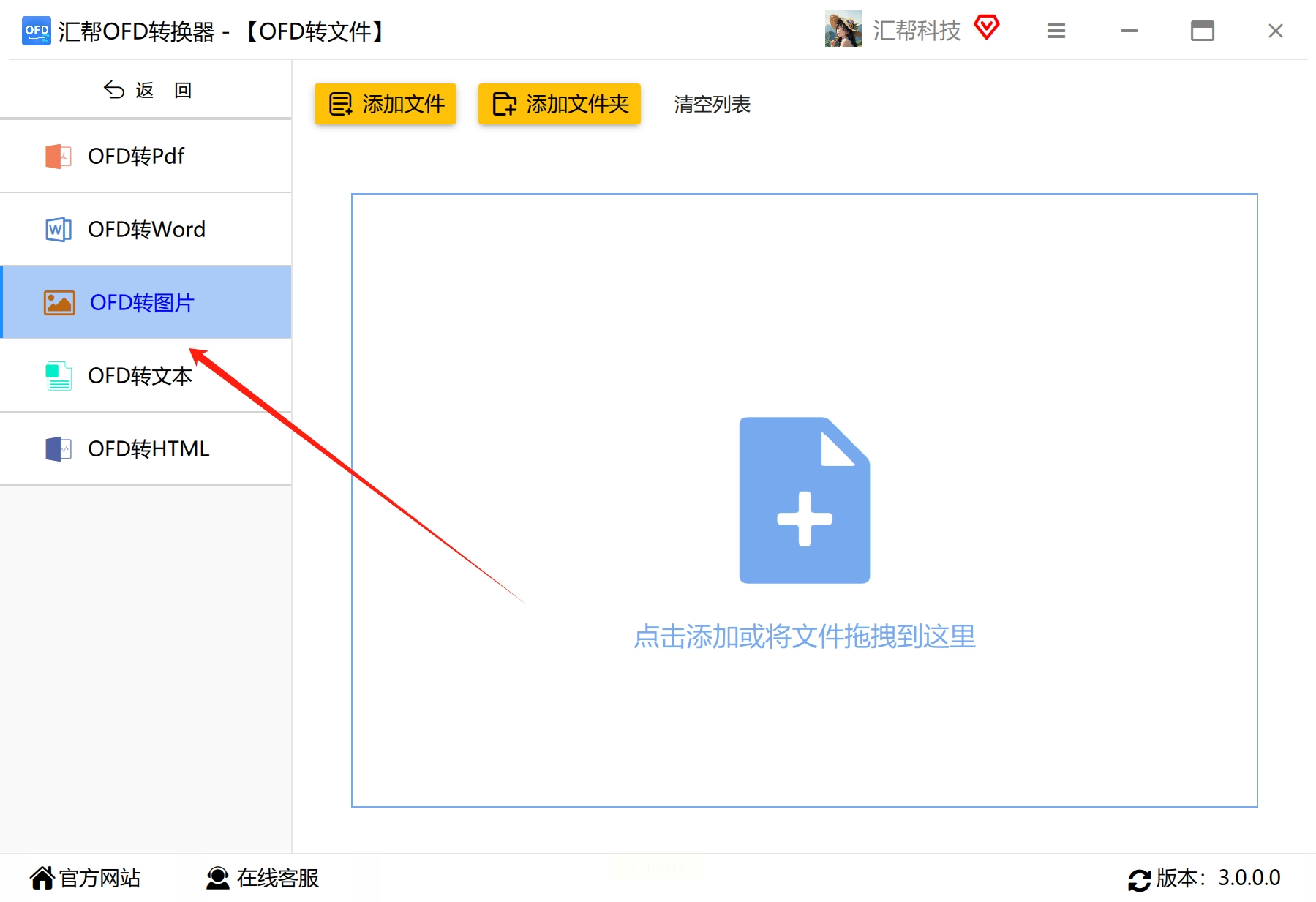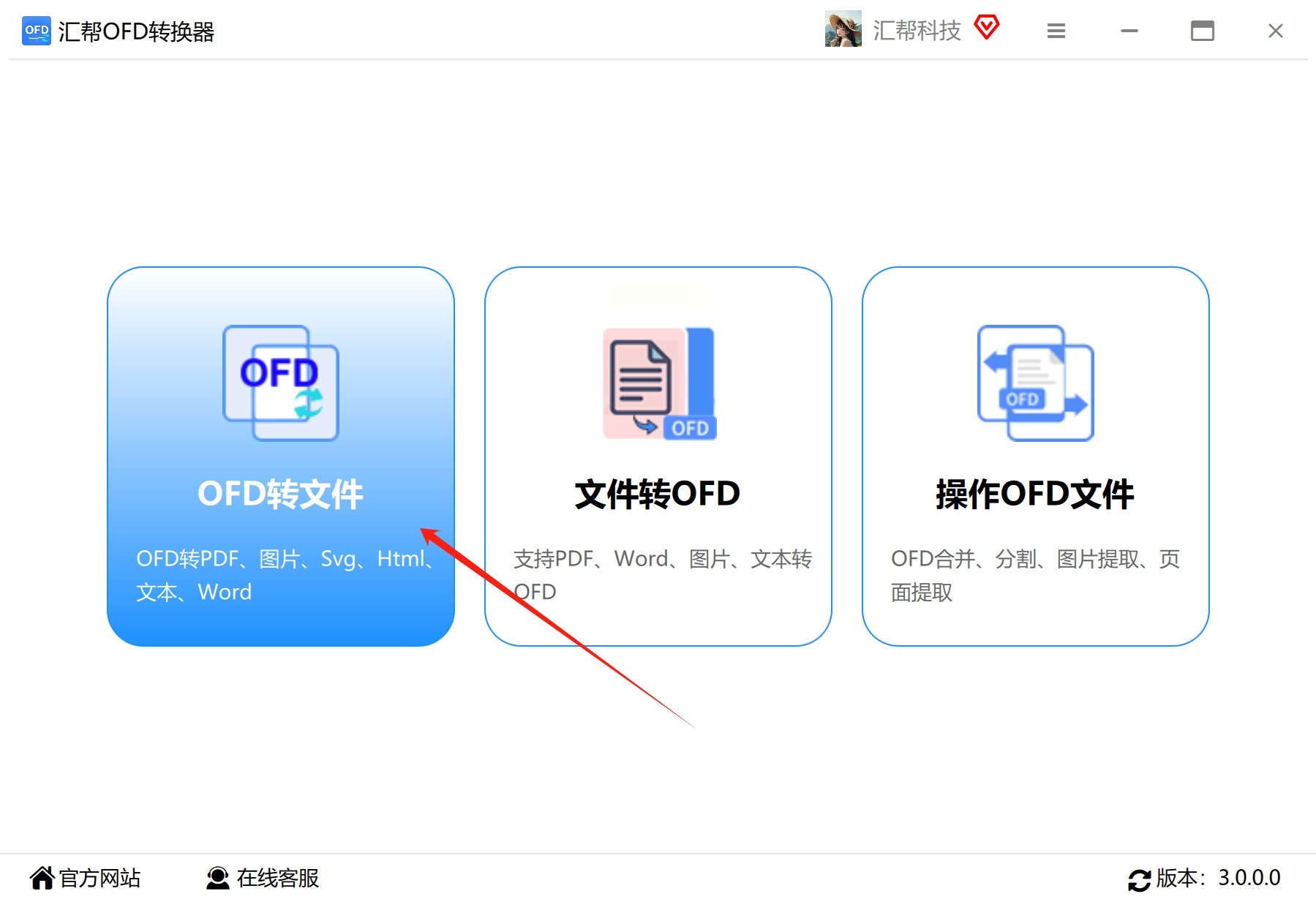 安装完成后打开软件,在首页找到“OFD转文件”模块,点击进入后选择“OFD转图片”功能(界面左侧能看到“PDF转图片”“OFD转Word”等选项,别选错了)。