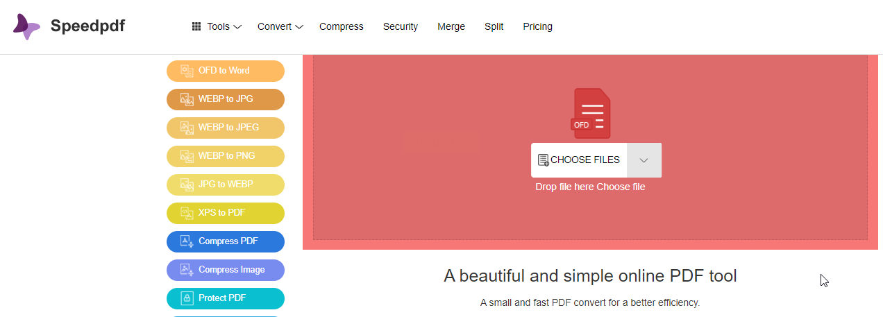 用浏览器搜索“Speedpdf在线转换”,进入官网后在首页找到“OFD转图片”功能入口。