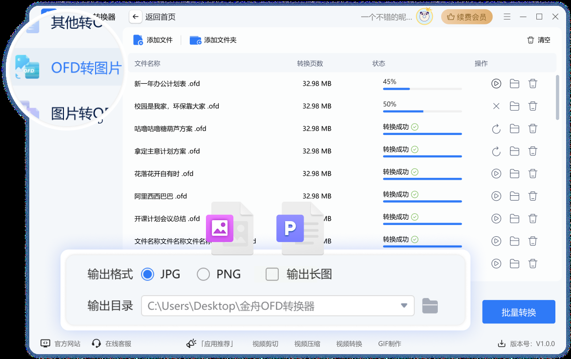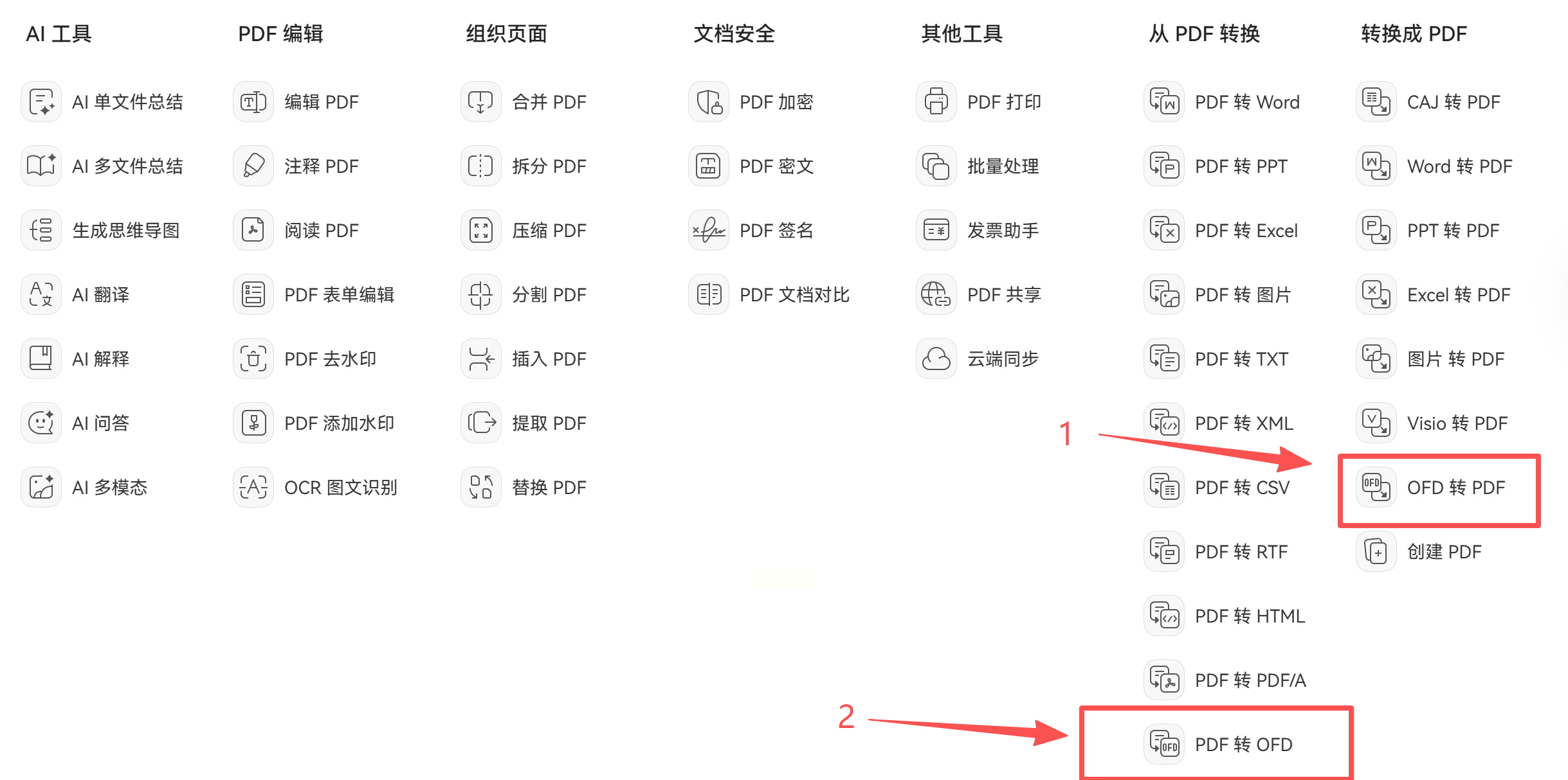 - 核心优势:免费、操作极简,支持PDF与OFD双向转换;