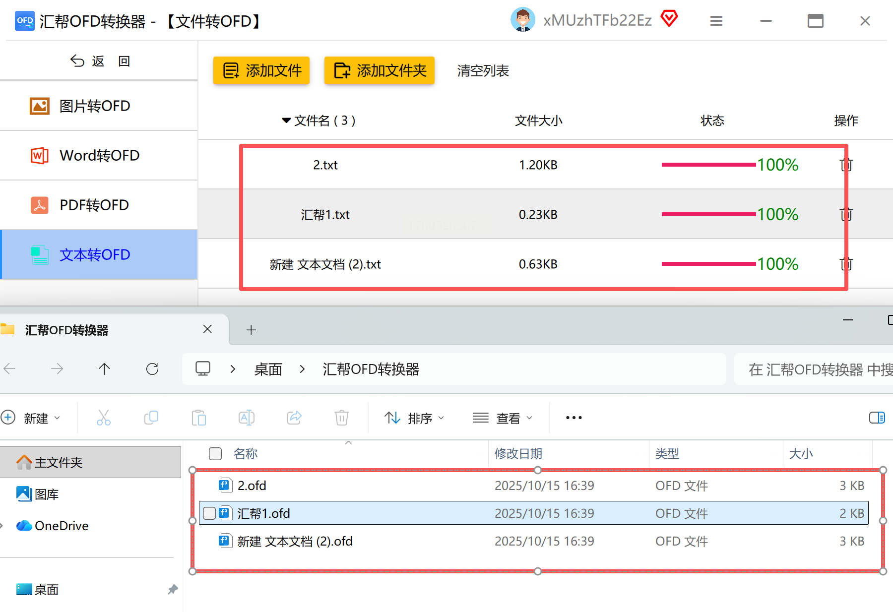 打开《汇帮OFD转换器》后,在主界面左侧功能区找到"文件转OFD"模块。该模块支持多种输入格式,包括PDF、Word、图片及纯文本(txt),完全覆盖日常办公中常见的文件类型。点击"文件转OFD"选项卡,进入文本转换专项界面。