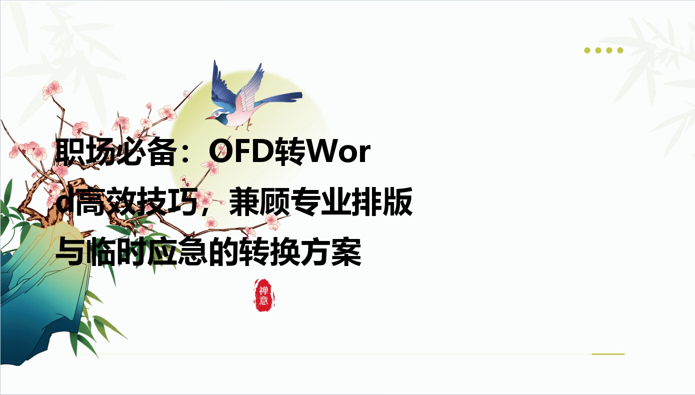 在数字化办公场景中,你是否曾因收到`.ofd`格式文件而陷入编辑困境?这种由我国自主制定的版式文档标准,在电子发票、政务公文等领域广泛应用,却因版面锁定特性形成了"阅读易,编辑难"的信息流转壁垒。当财务报表需要修改数据、政策文件需要补充注释时,将OFD转换为Word格式,便成为打通信息链的关键。本文基于真实用户搜索行为分析,从不同场景需求出发,为你拆解五种实用转换方案,助你高效完成格式跨越。