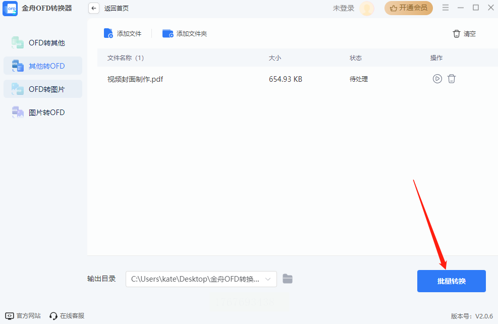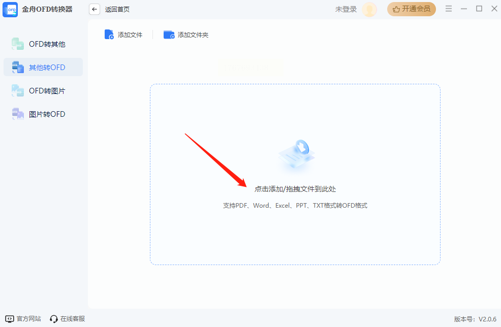 2. 左侧导航栏选择【PDF批量转OFD】(务必选择此选项) ,点击【添加文件】,支持按文件夹批量导入PDF文件