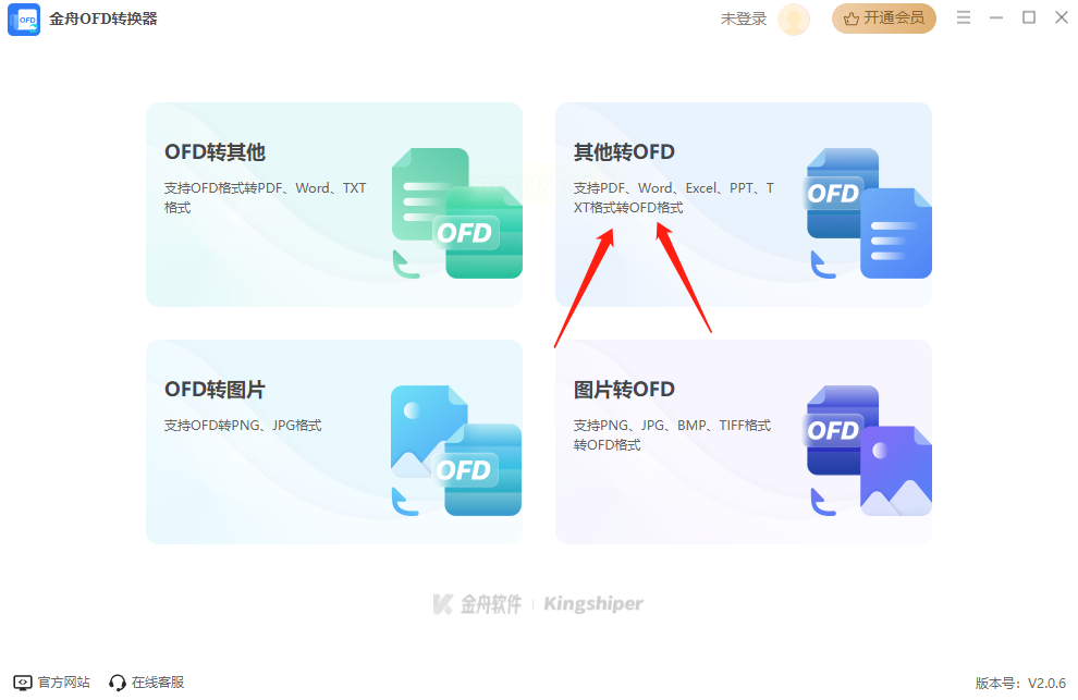 1. 打开金舟OFD转换器,选择【PDF转OFD】功能
