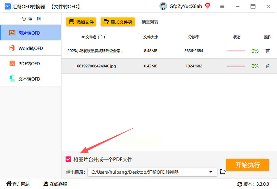 文件导入后,下方会出现一个选项“是否合并成一个PDF文件再转换”。如果你希望所有图片合并成一个PDF后再转为OFD,可以勾选这个选项;如果需要分开转换,就不用勾选。这个功能很贴心,能根据你的需求灵活调整。